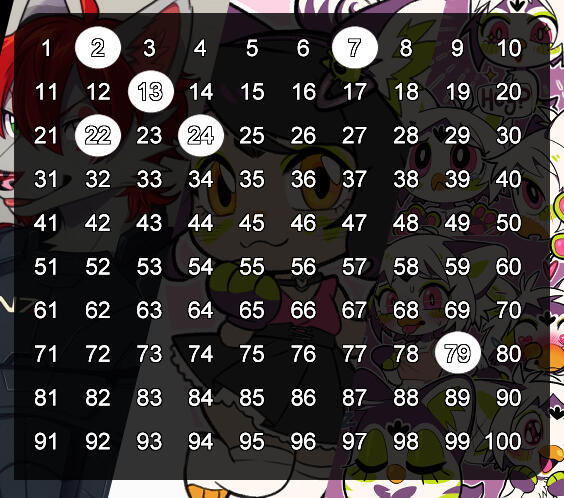*The numbers in white circles are already taken.